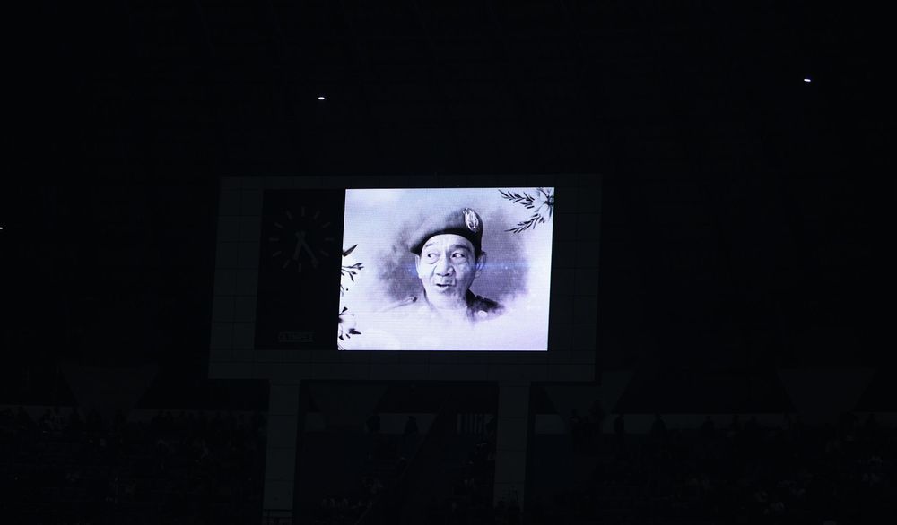 Sesi mengheningkan cipta untuk mendiang Rukandi digelar di Stadion Gelora Bandung Lautan Api (GBLA) jelang kick-off antara PERSIB dan Bali United, Minggu 12 April 2026. Staf keamanan PERSIB itu meninggal dunia dalam usia 66 tahun pada Sabtu, 11 April 2026.