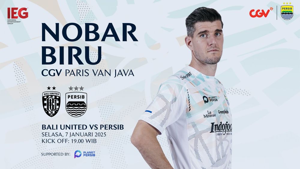 Tiket dapat dibeli melalui Website CGV, CGV App, atau langsung di Walk-In Counter di CGV Paris Van Java. Jadikan pengalaman nobar ini semakin seru dan penuh semangat untuk mendukung PERSIB meraih poin penuh.